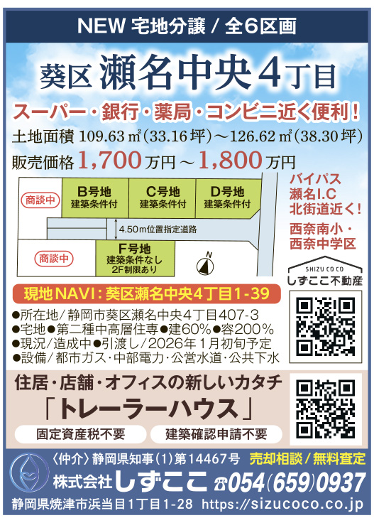 静岡市葵区『瀬名中央4丁目全6区画分譲地』